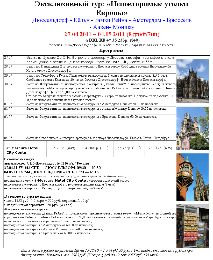 02 Мар 2011 15:45:37 ГЕРМАНИЯ МАЙСКИЕ! 27.04-04.05 от 34 223 р.(849 у.е.) от фирмы АРТ-ТРЕВЕЛ