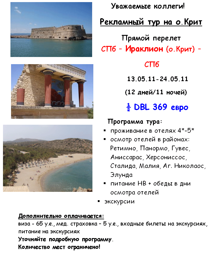 04 Мар 2011 10:08:16 ГРЕЦИЯ - КРИТ - 13.05-24.05 - РЕКЛАМНЫЙ ТУР от фирмы СОЛВЕКС