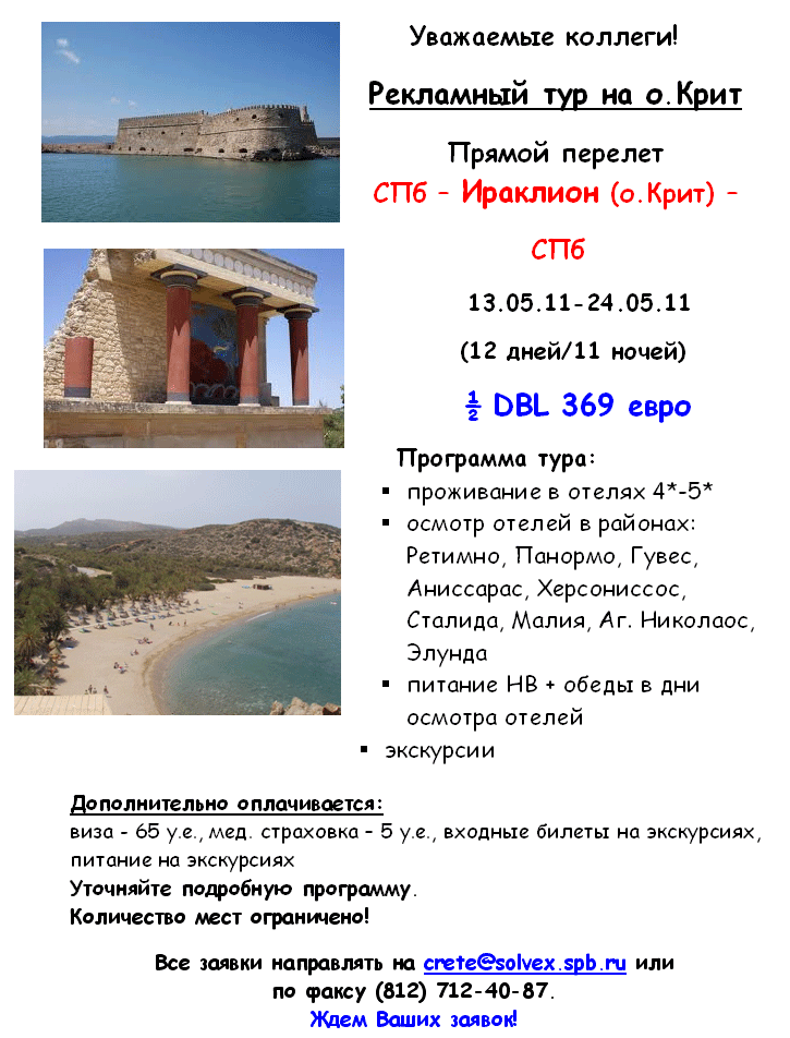 05 Мар 2011 11:14:30 РЕКЛАМНЫЙ ТУР НА О.КРИТ 13.05.11-24.05.11 от фирмы СОЛВЕКС