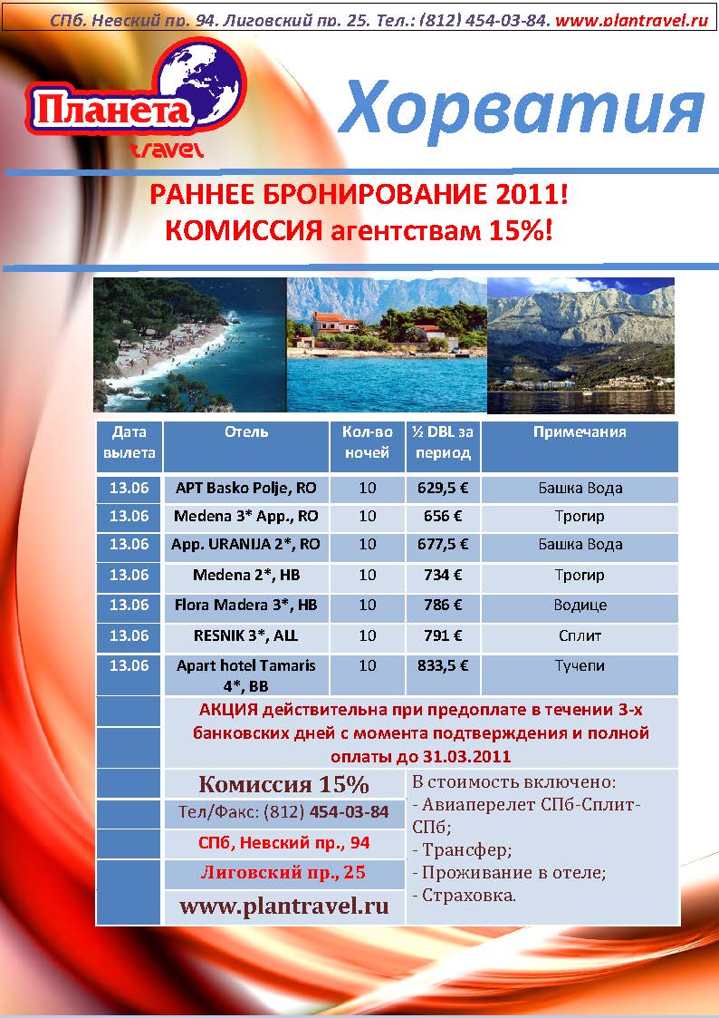 07 Мар 2011 13:13:20 ХОРВАТИЯ Комиссия 15% от фирмы ПЛАНЕТА TRAVEL