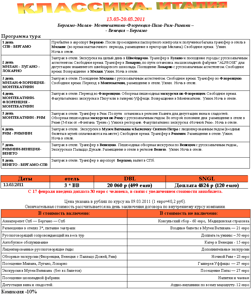 09 Мар 2011 18:00:34 ИТАЛИЯ - 13.03-20.03 - Классика Италии от фирмы ФЛАМИНГО