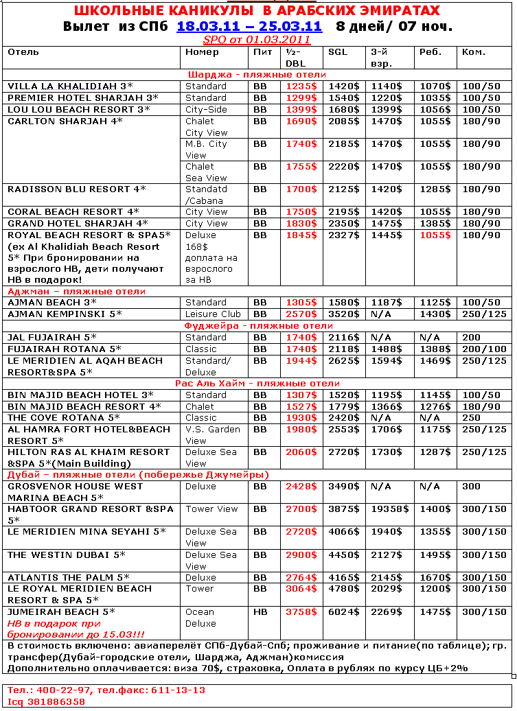 10 Мар 2011 11:54:02 ОАЭ 18.0.03-25.03_Школьные каникулы SPO от 01.03 от фирмы ЦБПИЭ МАНЕЖНЫЙ