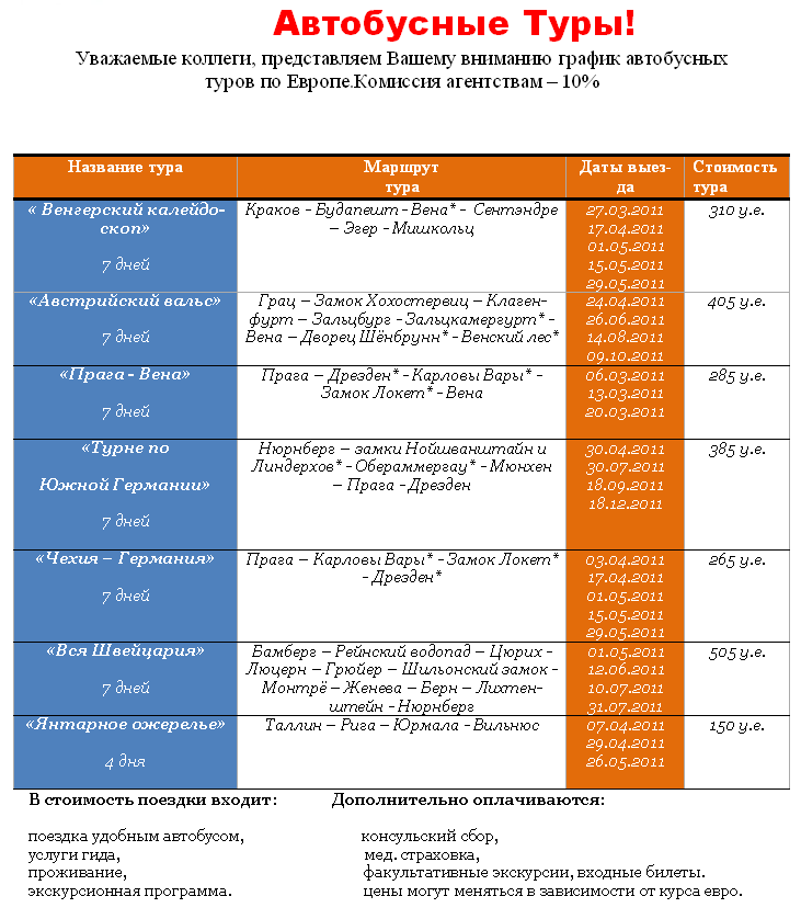 10 Мар 2011 13:38:25 ЕВРОПА. ГРАФИК АВТОБУСНЫХ ТУРОВ от фирмы DISCOVERY TOUR