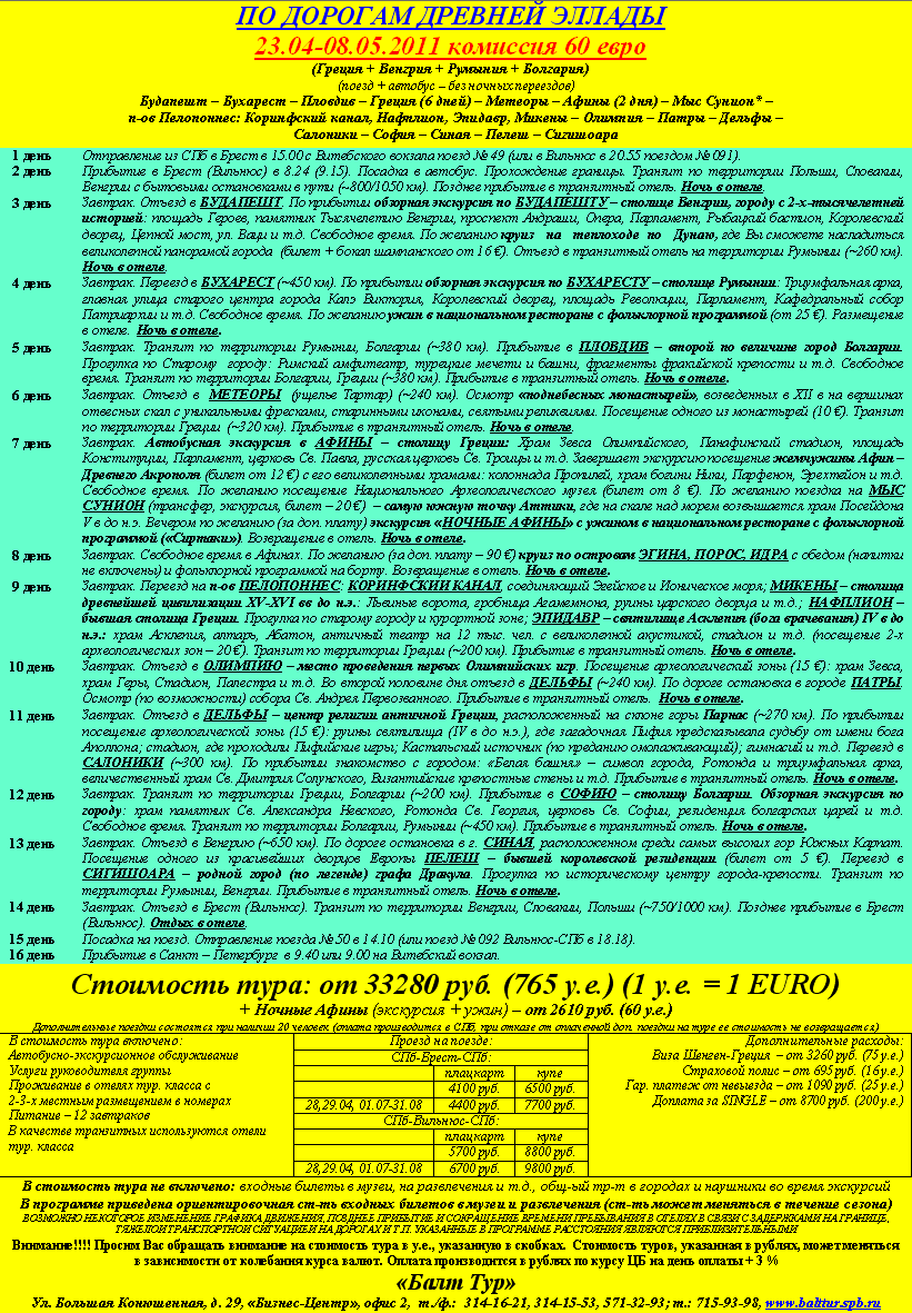 15 Мар 2011 11:35:26 ГРЕЦИЯ-ВЕНГРИЯ-РУМЫНИЯ-БОЛГАРИЯ - 23.04-08.05 - По дорогам Древней Эллады от фирмы БАЛТТУР