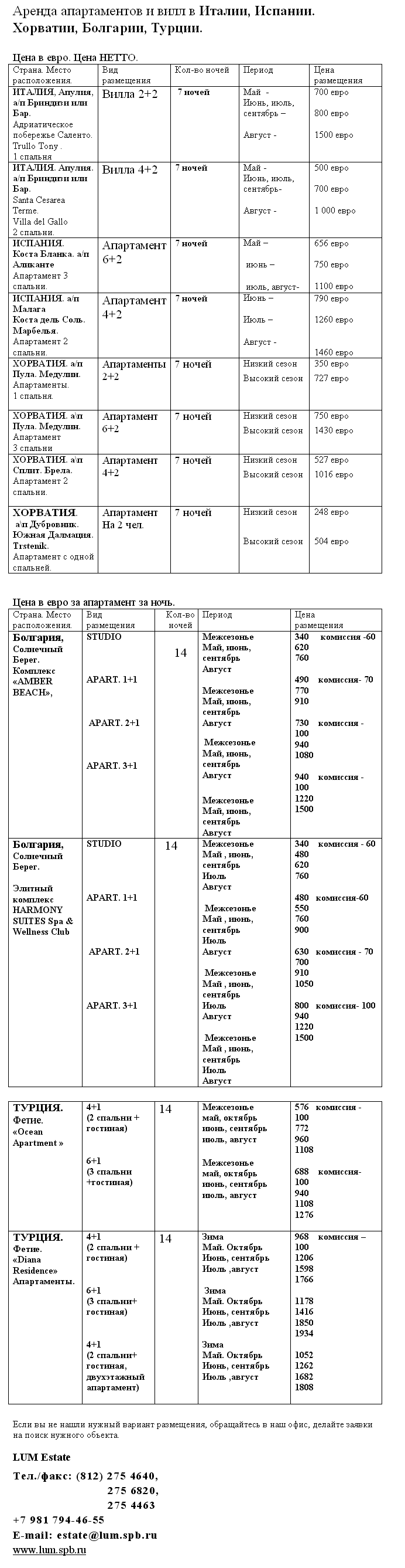 21 Мар 2011 11:01:58 ИТАЛИЯ,ИСПАНИЯ,ХОРВАТИЯ,БОЛГАРИЯ,ТУРЦИЯ - Аренда апартаментов и вилл от фирмы ЛУЧШЕ УЗНАЙ МИР