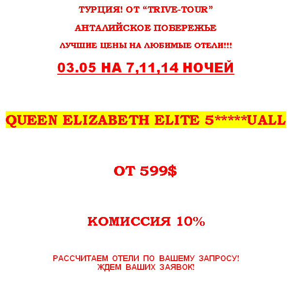 21 Мар 2011 20:00:06 ТУРЦИЯ. АНТАЛИЯ С 03/05 НА 7,11,14 НОЧЕЙ от фирмы TRIVE ТУР