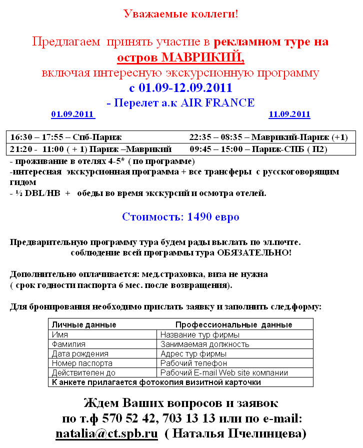 21 Мар 2011 18:35:42 РЕКЛАМНЫЙ ТУР - МАВРИКИЙ с 01.09-12.09.2011 от фирмы СОВЕТ ПО ТУРИЗМУ