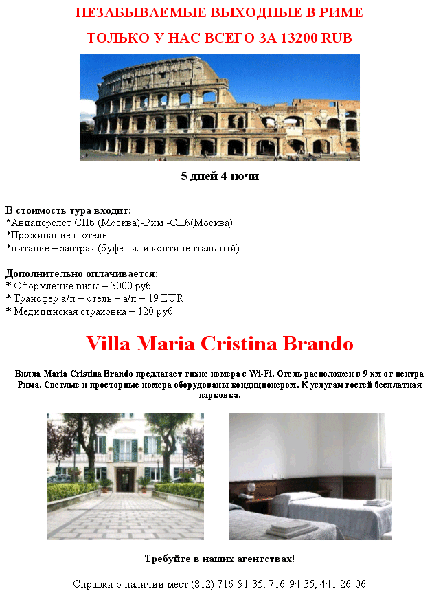 ИТАЛИЯ - РИМ 5дн/4н от фирмы RTT-INTERNATIONAL |