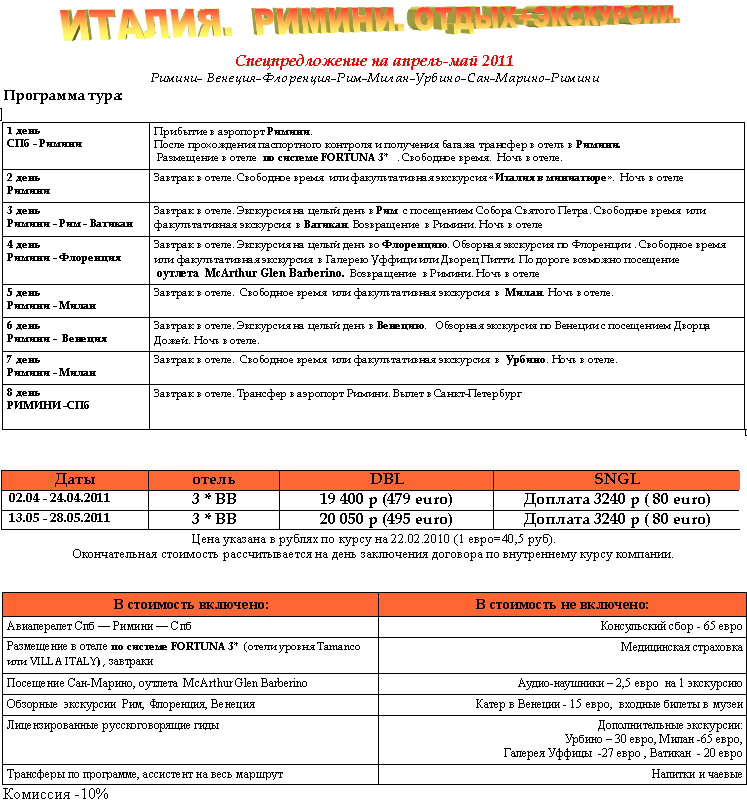 24 Мар 2011 10:24:52 ИТАЛИЯ Отдых в Римини + экскурсии апр-май (Римини) от фирмы ФЛАМИНГО