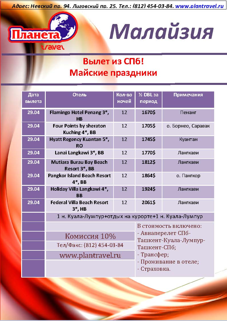 25 Мар 2011 14:09:15 МАЛАЙЗИЯ из СПб от 1670$ от фирмы ПЛАНЕТА TRAVEL