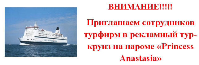 Завтрак на пароме за доп. плату 07.00 прибытие парома в СПб.