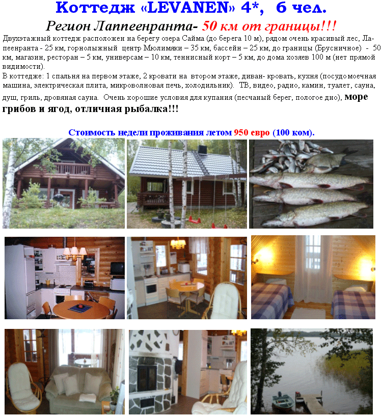 30 Мар 2011 13:59:08 ФИНЛЯНДИЯ - ЛЕТО В КОТТЕДЖЕ LEVANEN на Сайме! СПЕШИТЕ БРОНИРОВАТЬ! от фирмы БЮРО ПУТЕШЕСТВИЙ