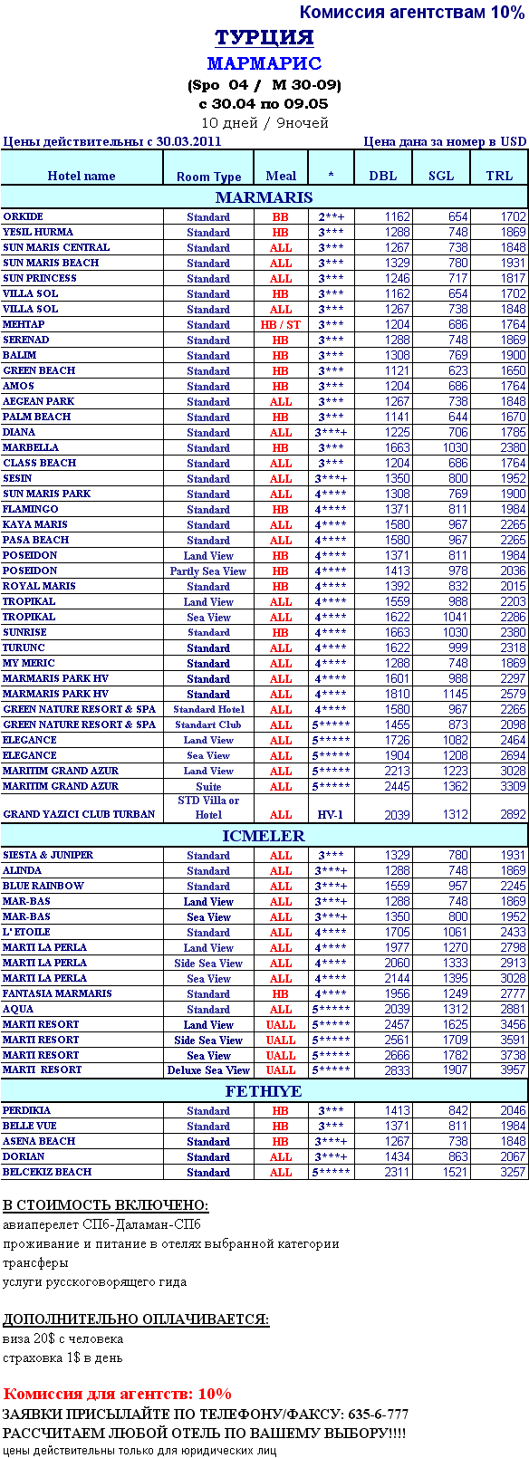 30 Мар 2011 15:10:29 ТУРЦИЯ - МАРМАРИС 30.04-09.05 от фирмы EL DAKAMY TRAVEL