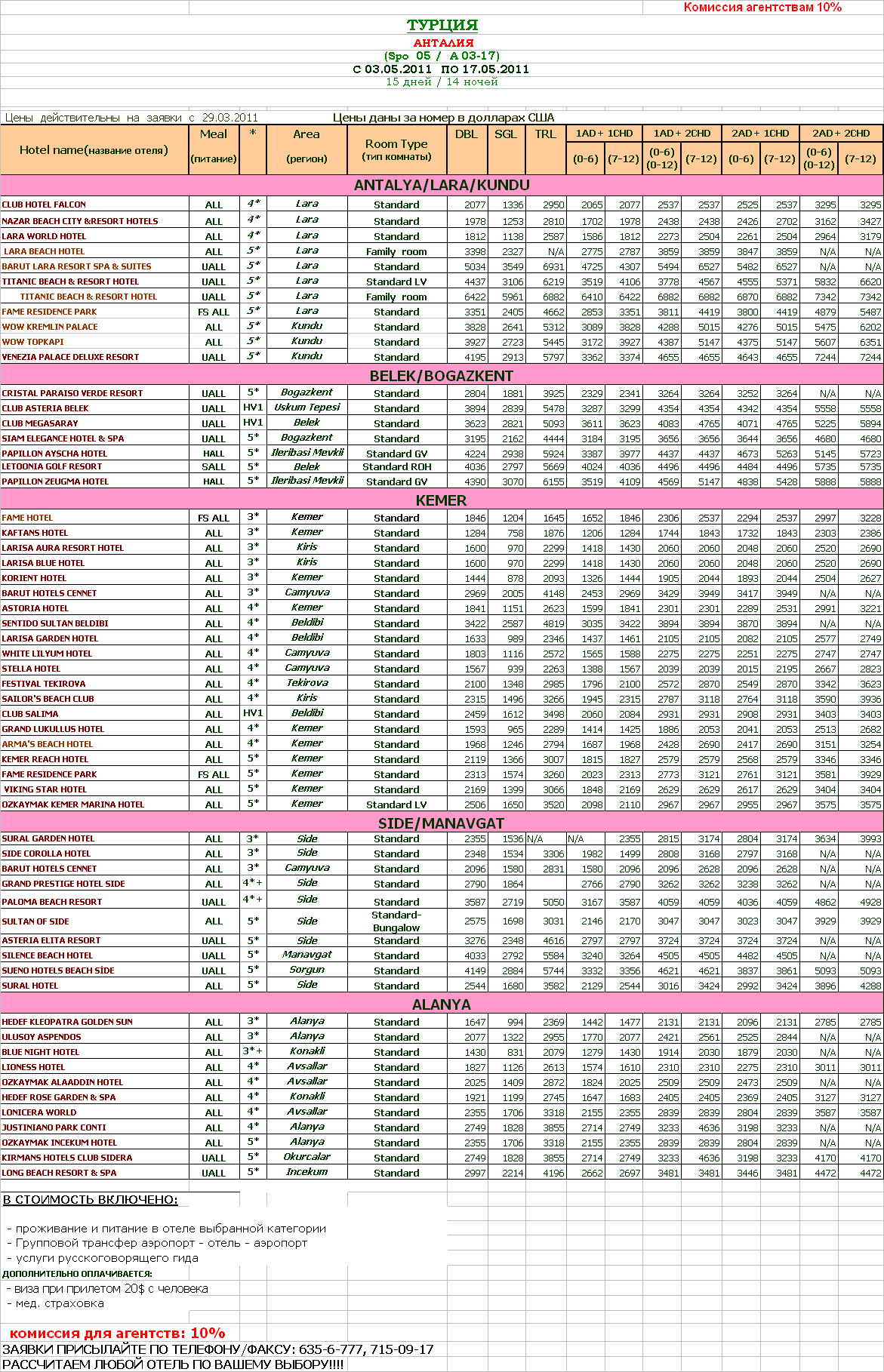 30 Мар 2011 15:19:56 ТУРЦИЯ. АНТАЛИЯ С 03.05.2011 ПО 17.05.2011 от фирмы EL DAKAMY TRAVEL