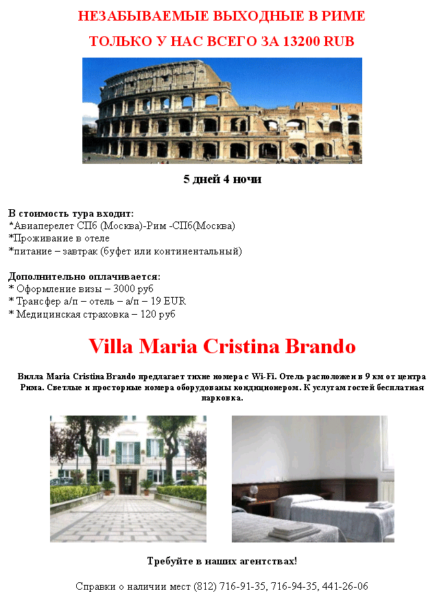 ИТАЛИЯ - РИМ 5дн/4н в Villa Maria Cristina Brando от фирмы RTT-INTERNATIONAL |