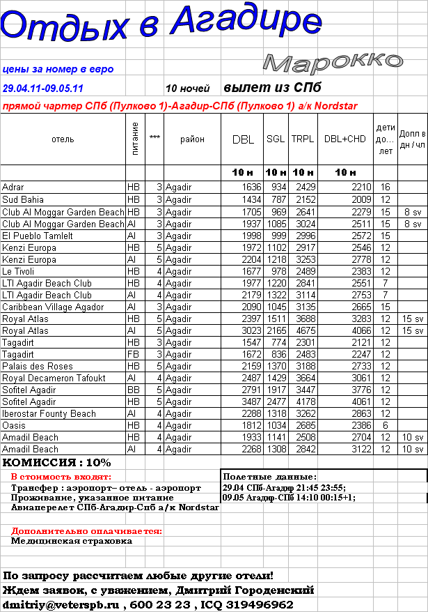 31 Мар 2011 14:36:22 МАРОККО НА МАЙСКИЕ ПРАЗДНИКИ - ОТДЫХ В АГАДИРЕ от фирмы ВЕТЕР СТРАНСТВИЙ
