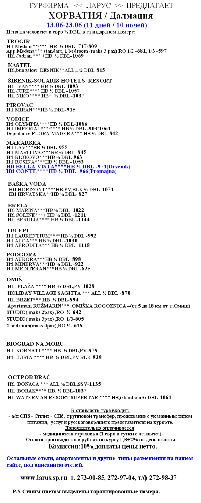 05 Апр 2011 11:29:58 ХОРВАТИЯ. Сплит 13.06-23.06 (авиа) от фирмы ЛАРУС