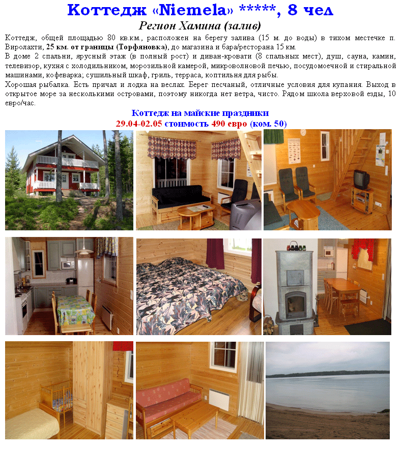 05 Апр 2011 10:52:31 ФИНЛЯНДИЯ - КОТТЕДЖ Niemela НА МАЙСКИЕ ПРАЗДНИКИ! 25 км от границы! от фирмы БЮРО ПУТЕШЕСТВИЙ