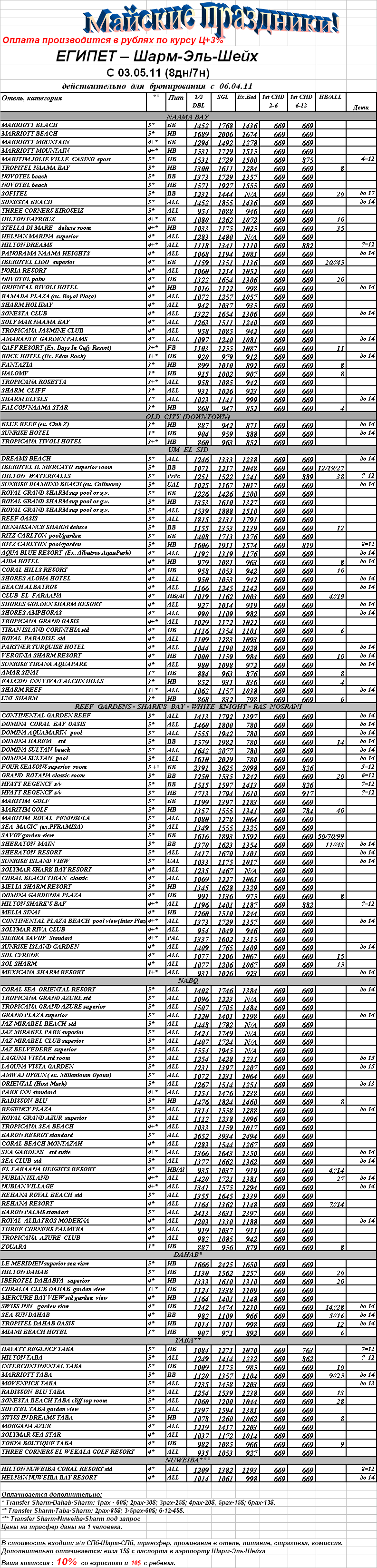 07 Апр 2011 13:51:59 ЕГИПЕТ - ШАРМ ЭЛЬ ШЕЙХ C 03.05.11 (8дн/7н) от фирмы ТУРНЕ