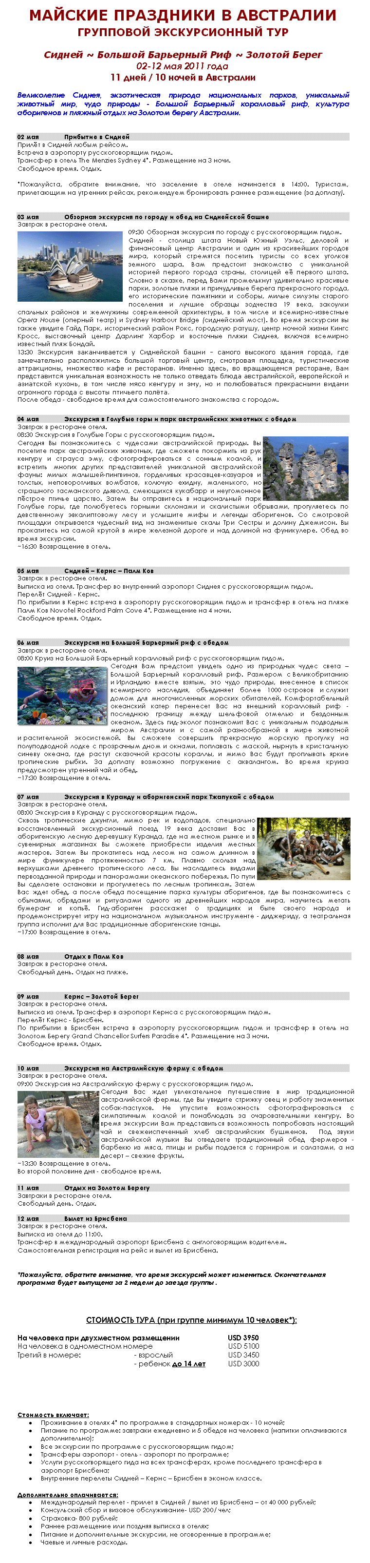 07 Апр 2011 15:30:31 АВСТРАЛИЯ с 02.05 по 12.05.11 за 3950 $ от фирмы АРКТИК РОУД