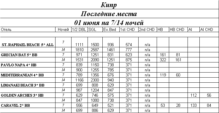08 Апр 2011 11:40:10 КИПР с 01.06 от фирмы БАГИРА