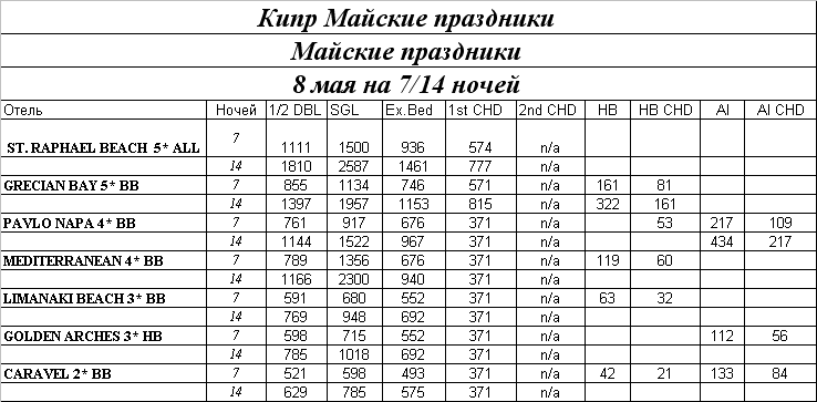 08 Апр 2011 12:25:06 КИПР. Майские праздники 8 мая на 7/14 ночей от фирмы БАГИРА