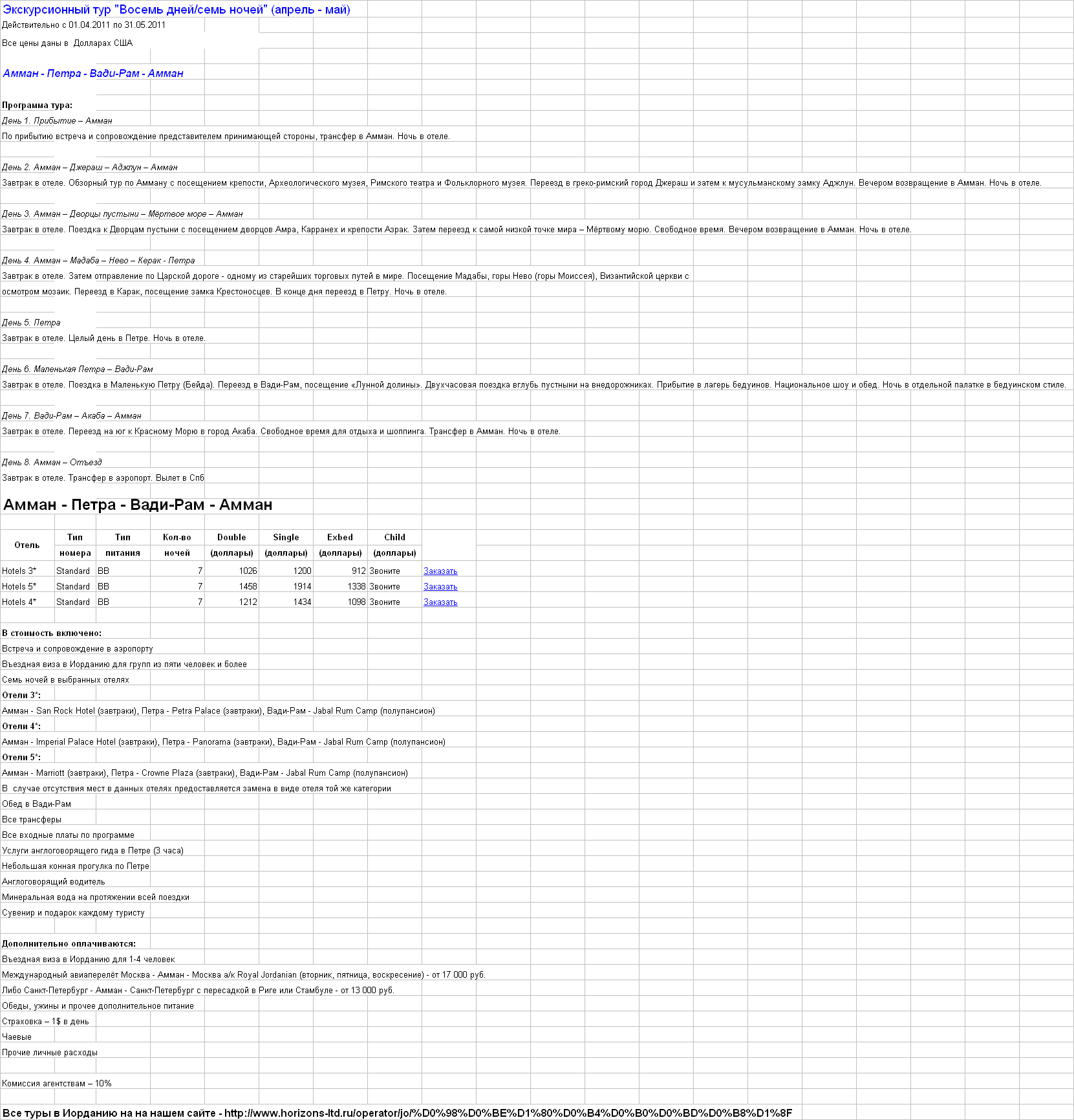 08 Апр 2011 14:42:08 ИОРДАНИЯ, спецпредложения от фирмы ГОРИЗОНТ БЕЗ ГРАНИЦ
