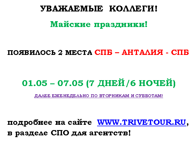 12 Апр 2011 14:30:09 ТУРЦИЯ. АНТАЛИЯ НА МАЙСКИЕ! от фирмы TRIVE ТУР