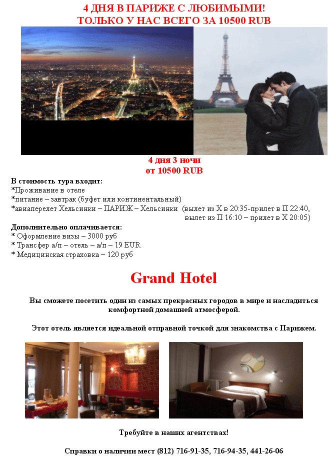ФРАНЦИЯ - ПАРИЖ 4дн/3н в Grand Hotel от фирмы RTT-INTERNATIONAL |