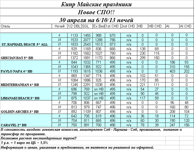 13 Апр 2011 13:45:29 КИПР - новое СПО на 30.04 от фирмы БАГИРА
