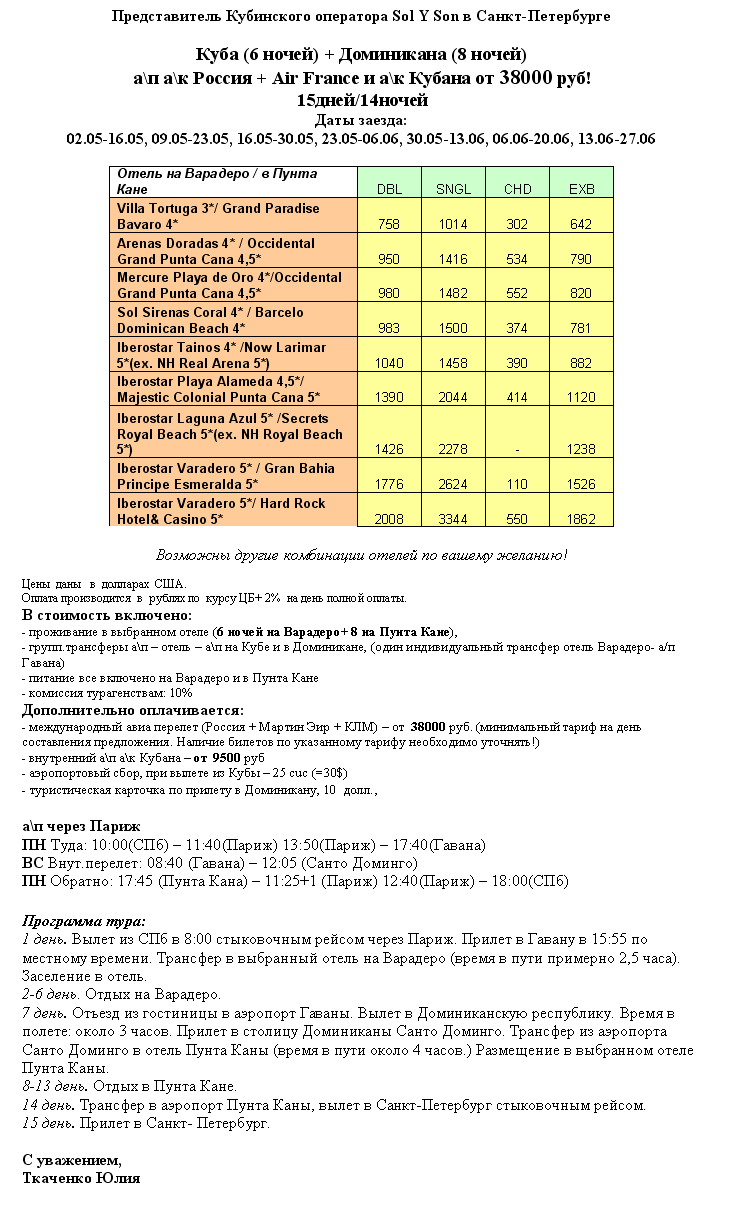 13 Апр 2011 19:41:10 КУБА+ ДОМИНИКАНА в мае - июне, 15 дней/14 ночей от фирмы ОТКРЫТЫЙ МИР