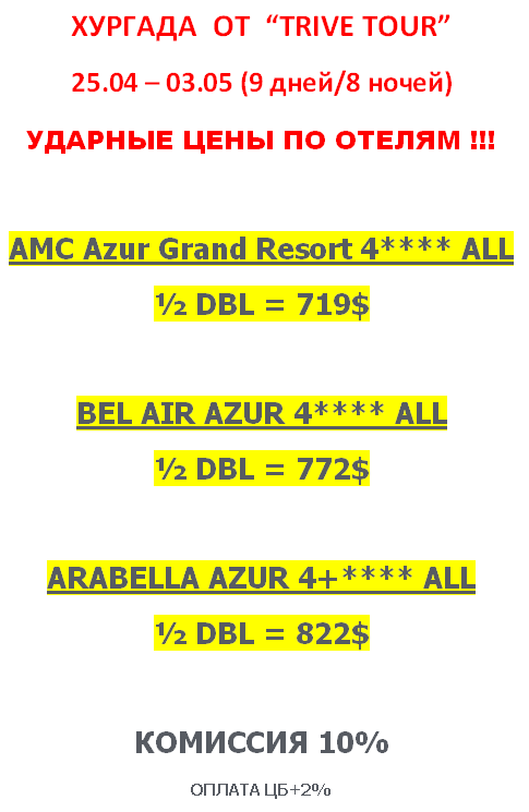 19 Апр 2011 15:04:58 ЕГИПЕТ - ХУРГАДА! 25.04 - 03.05 (9 дней/8 ночей) СУПЕР СПО! от фирмы TRIVE ТУР