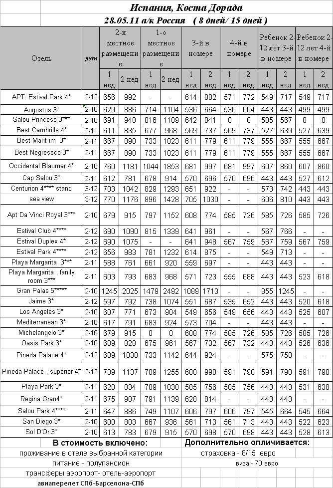 19 Апр 2011 18:01:13 ИСПАНИЯ, Коста Дорада 28.05.11 а/к Россия ( 8 дней/ 15 дней ) от фирмы ПРИМА