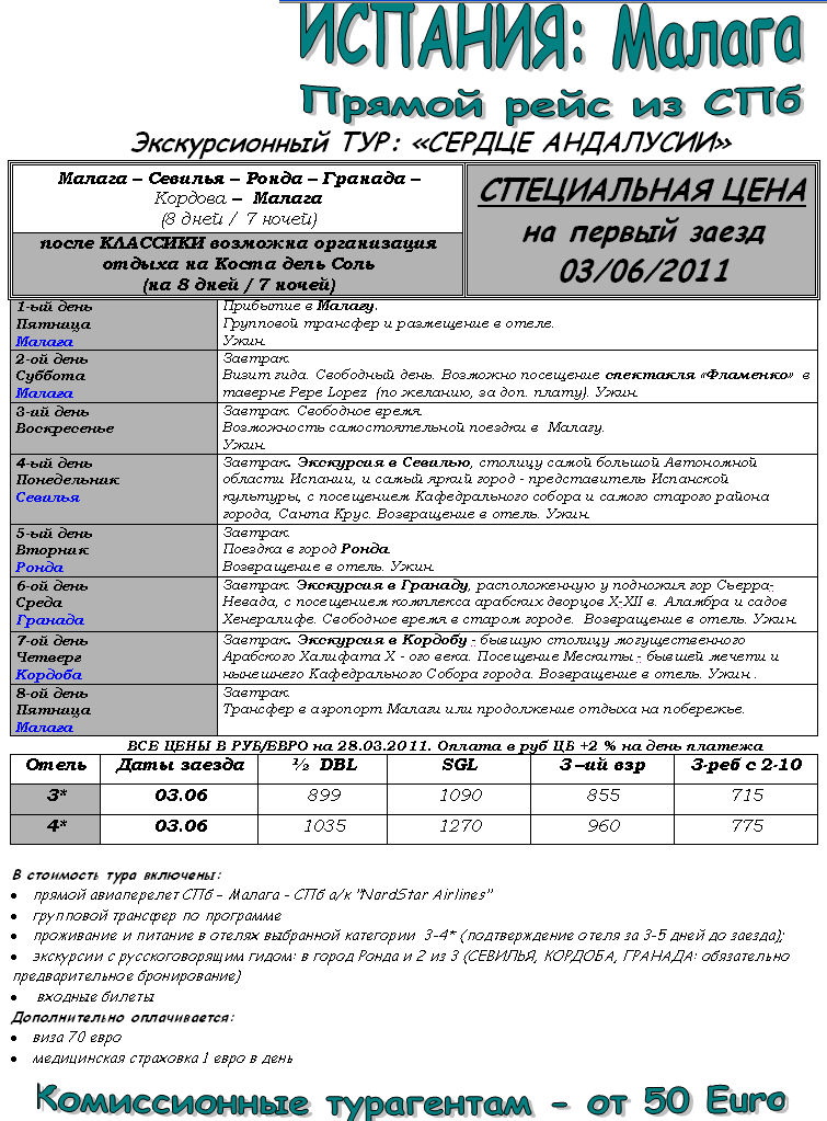 20 Апр 2011 13:05:38 ИСПАНИЯ - МАЛАГА - с 03.06 Сердце Андалусии от фирмы ФЛАМИНГО