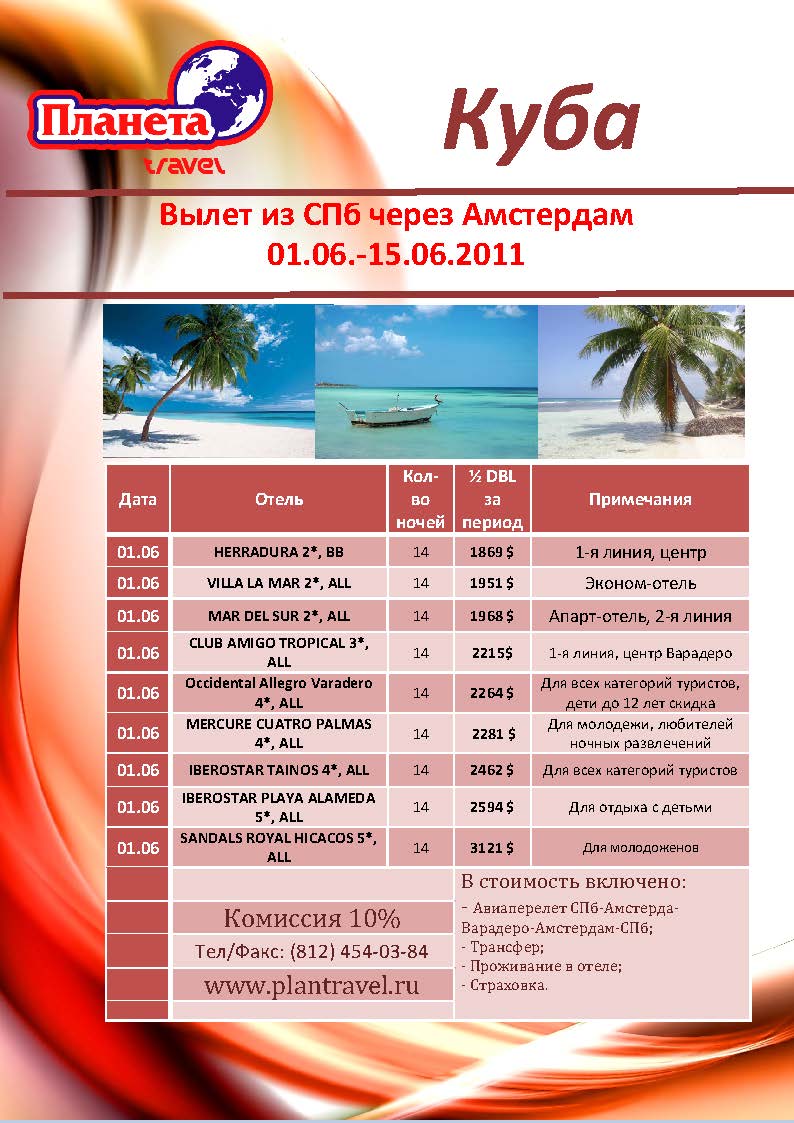 20 Апр 2011 16:49:10 КУБА из СПб от 1869$ от фирмы ПЛАНЕТА TRAVEL