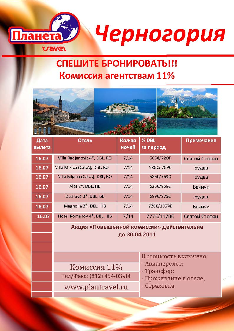 21 Апр 2011 08:45:01 ЧЕРНОГОРИЯ. КОМИССИЯ 11% только до 30.04. от фирмы ПЛАНЕТА ТРЭВЕЛ