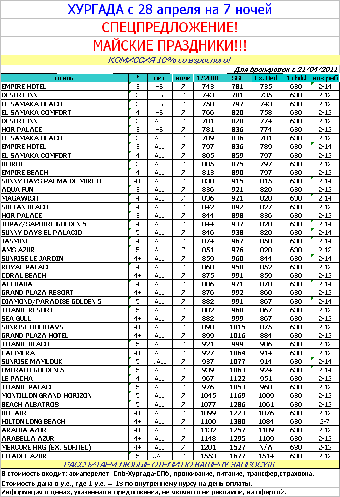 21 Апр 2011 11:49:10 ЕГИПЕТ - ХУРГАДА с 28 апреля на 7 ночей СПЕЦПРЕДЛОЖЕНИЕ! от фирмы БАГИРА