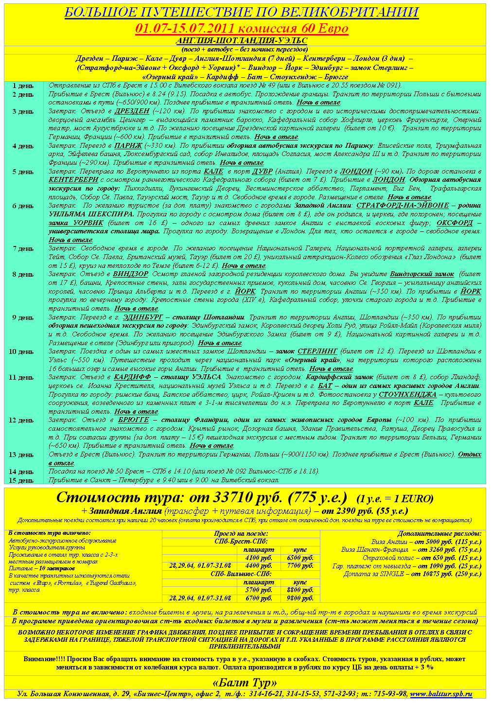 22 Апр 2011 11:26:22 АНГЛИЯ-ШОТЛАНДИЯ-УЭЛЬС. БОЛЬШОЕ ПУТЕШЕСТВИЕ ПО ВЕЛИКОБРИТАНИИ 01.07-15.07.2011 от фирмы БАЛТТУР