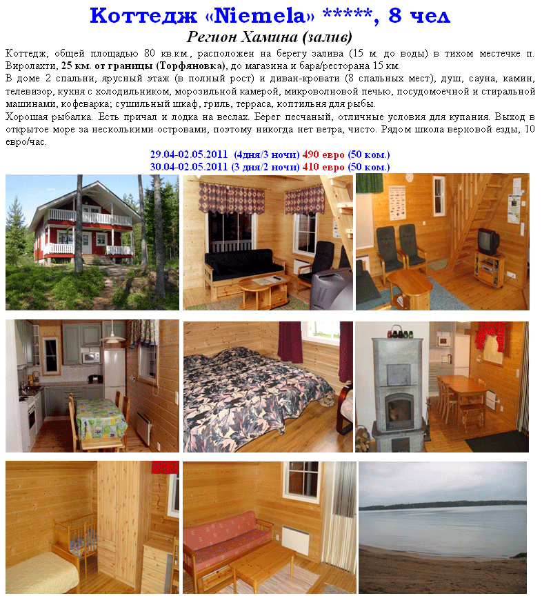22 Апр 2011 14:07:38 ФИНЛЯНДИЯ - ГОРЯЩИЙ КОТТЕДЖ НА МАЙСКИЕ ПРАЗДНИКИ! СПЕШИТЕ БРОНИРОВАТЬ! от фирмы БЮРО ПУТЕШЕСТВИЙ