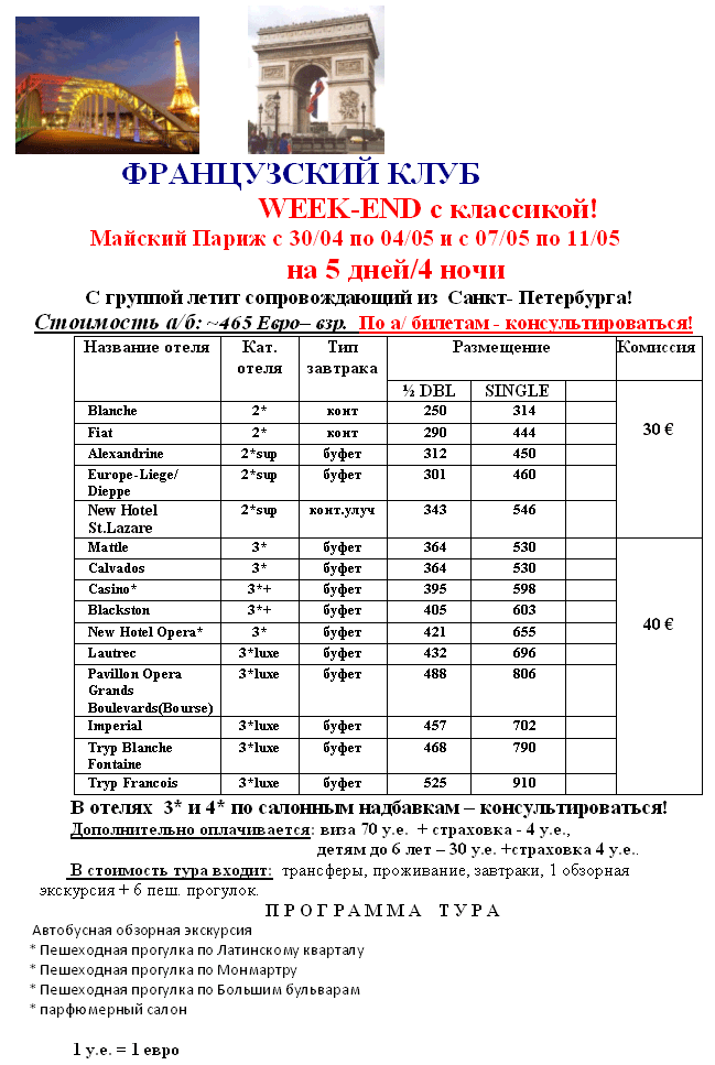 ФРАНЦИЯ - ПАРИЖ - АВИАБИЛЕТЫ по 465 евро 30.04-04.05 (2 места), 07.05-11.05/14.05 (2 места) от фирмы ИВОЛГА