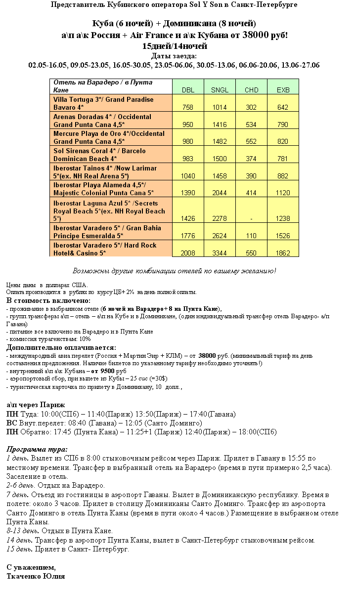 22 Апр 2011 18:00:32 КУБА+ Доминикана 15 дней/14 ночей в мае - июне из СПб от фирмы ОТКРЫТЫЙ МИР