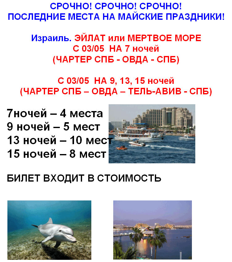 25 Апр 2011 14:09:03 ИЗРАИЛЬ с 03.05 ПОСЛЕДНИЕ МЕСТА НА МАЙСКИЕ ПРАЗДНИКИ от фирмы СОЛВЕКС