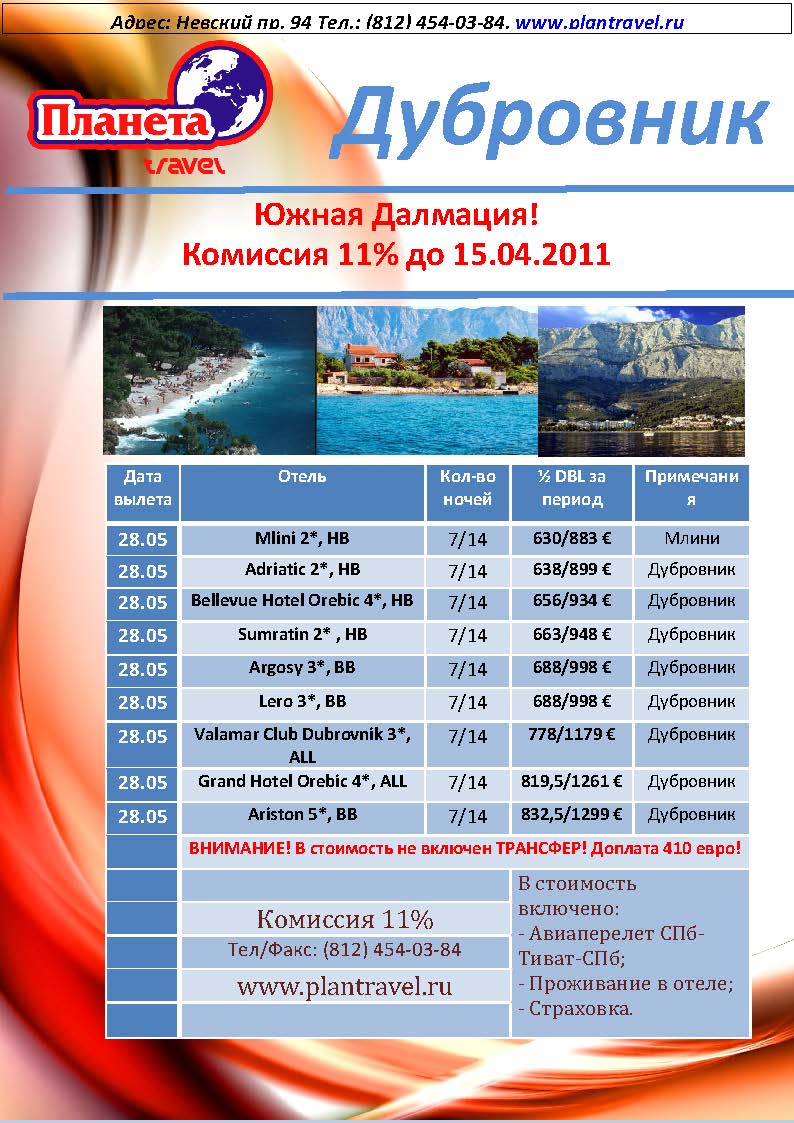 25 Апр 2011 14:13:47 ХОРВАТИЯ Дубровник-КОМИССИЯ 11% от фирмы ПЛАНЕТА TRAVEL