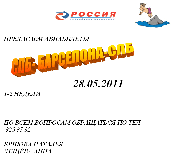 26 Апр 2011 15:01:16 АВИАБИЛЕТЫ - СПБ-БАРСЕЛОНА-СПБ 28.05.2011 от фирмы ПРИМА
