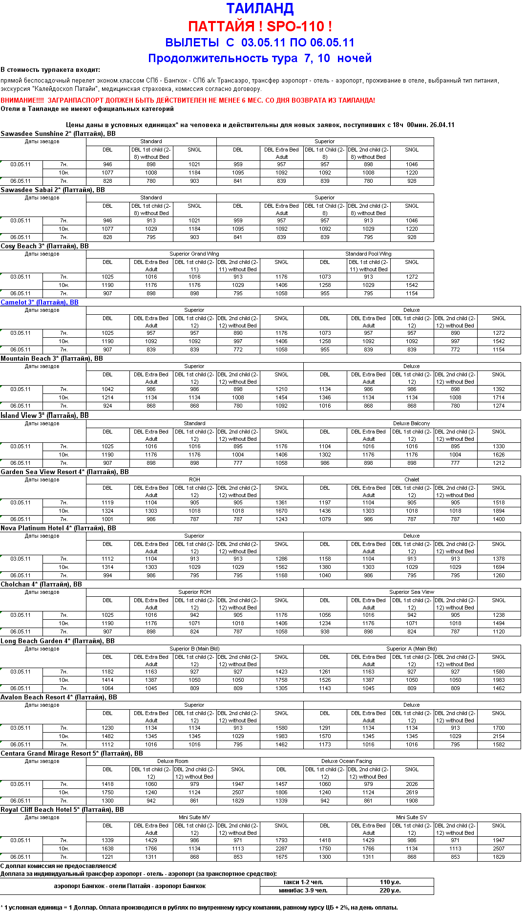 27 Апр 2011 12:24:54 ТАИЛАНД - ВЫЛЕТЫ 03.05 и 06.05 - ПРОДАЖА АВИАБИЛЕТОВ от фирмы ЮЖНЫЙ КРЕСТ