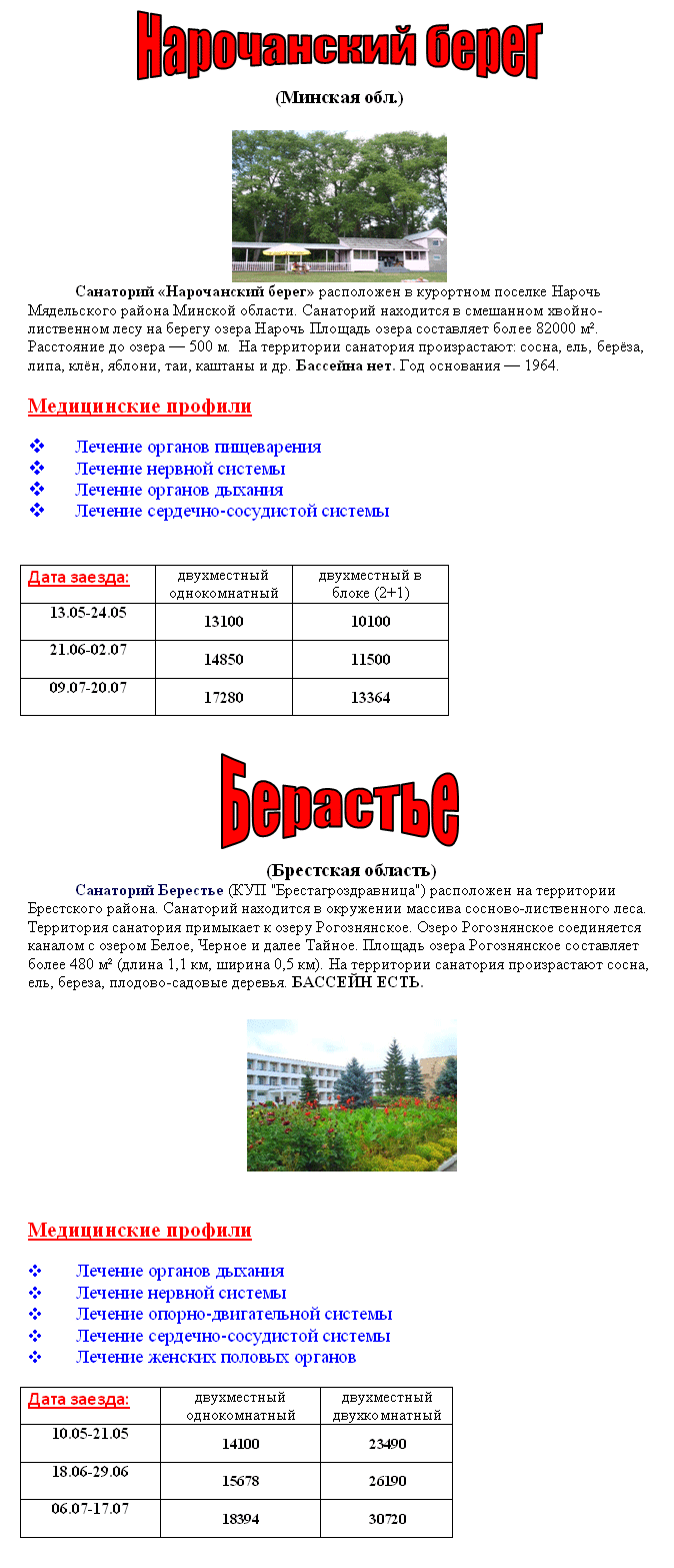28 Апр 2011 15:00:25 БЕЛОРУССИЯ - Санатории от фирмы DISCOVERY TOUR