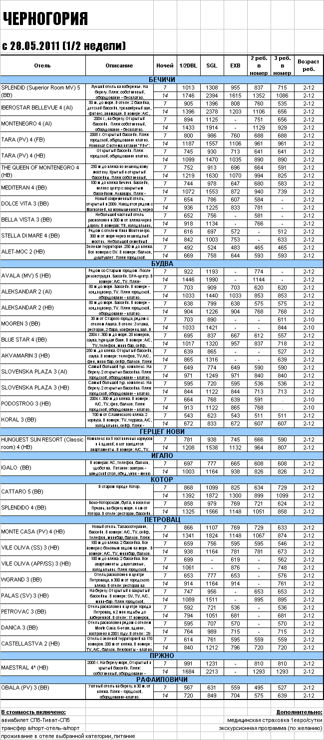 28 Апр 2011 11:46:02 ЧЕРНОГОРИЯ с 28.05.2011 (1/2 недели) - от фирмы FREMAD RUSSIA
