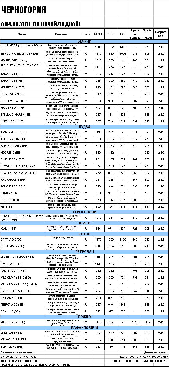 28 Апр 2011 11:46:30 ЧЕРНОГОРИЯ с 04.06.2011 (10 ночей/11 дней) - от фирмы FREMAD RUSSIA