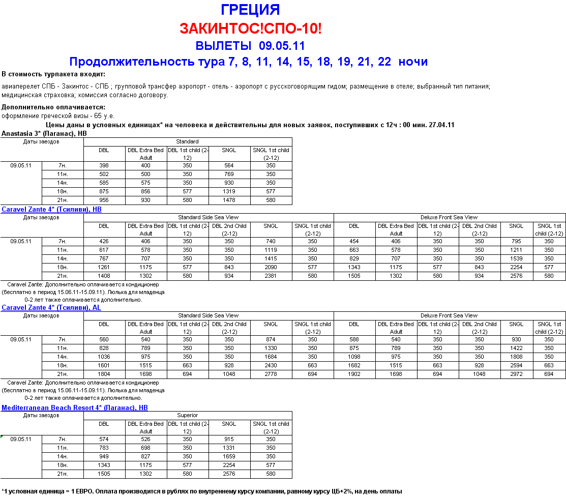28 Апр 2011 14:40:33 ГРЕЦИЯ, ЗАКИНТОС - ПОСЛЕДНИЕ МЕСТО НА ВЫЛЕТ 01.05 от фирмы ЮЖНЫЙ КРЕСТ