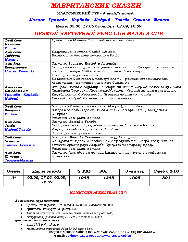 28 Апр 2011 15:10:27 ИСПАНИЯ. Классический тур "Мавританские сказки" 17/06 от 1085 евро от фирмы АКАДЕМИЯ